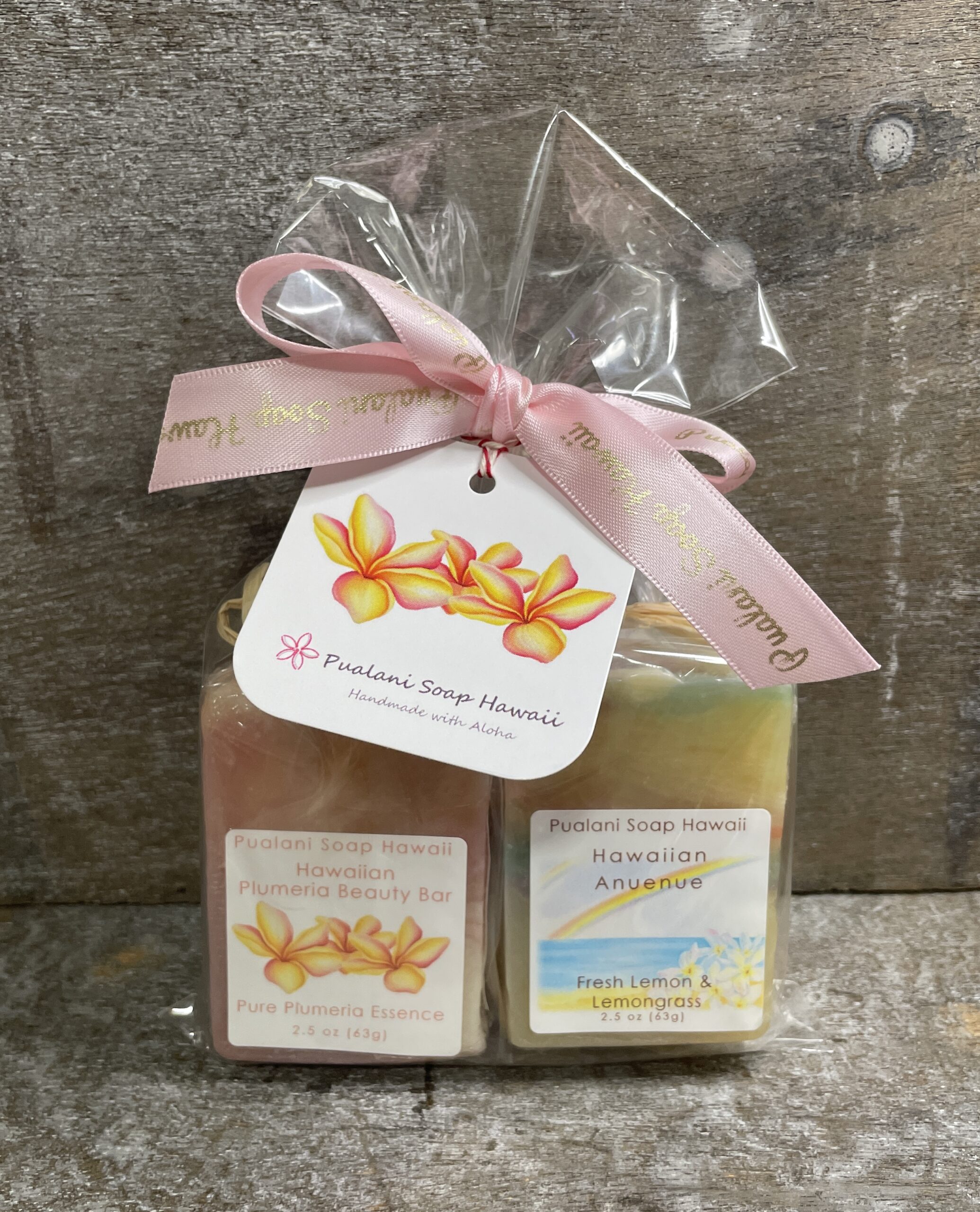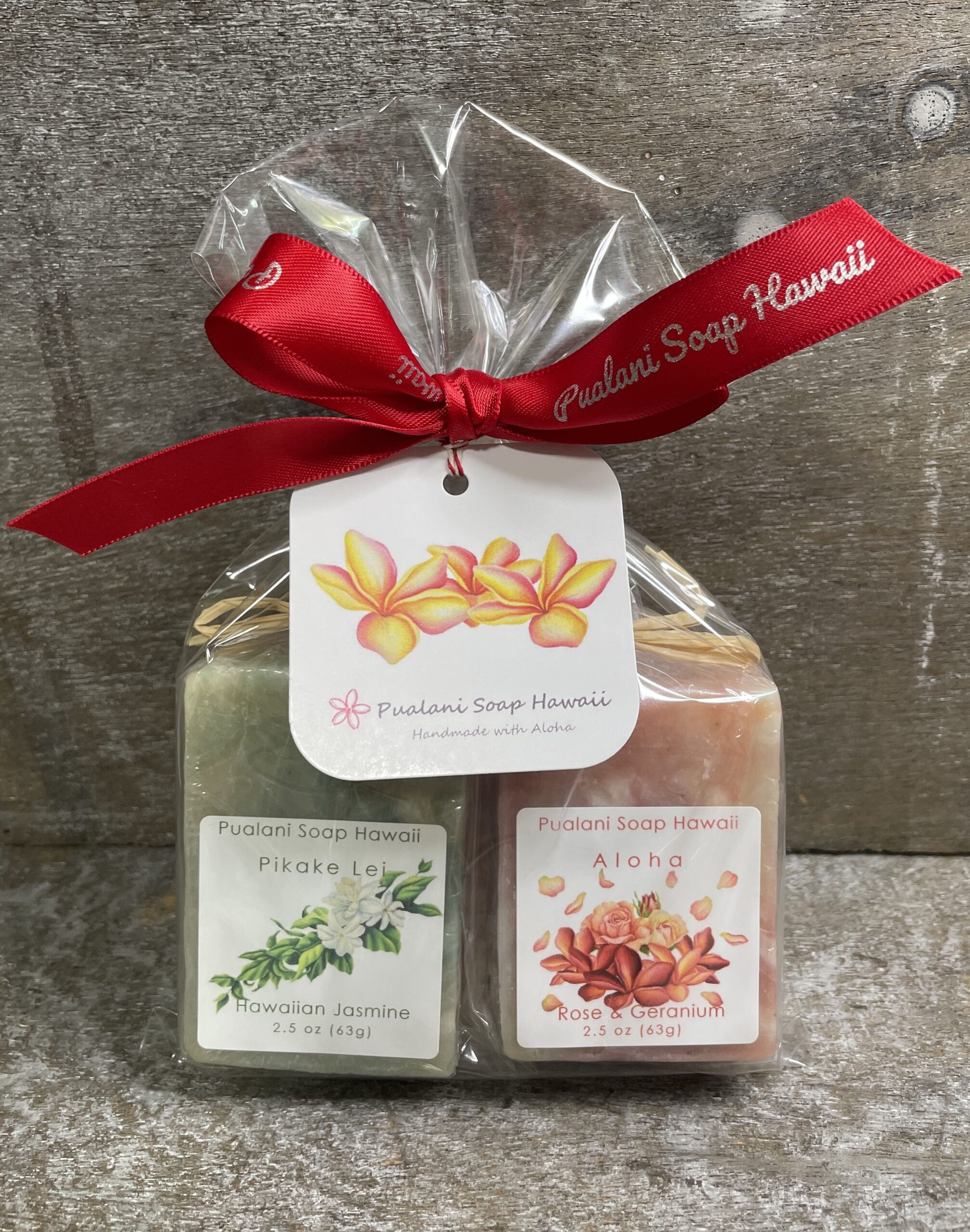 Pure olive oil, Coconut oil, Palm oil, Castor oil, Aloe butter, Hawaiian Kukui Nut oil, Organic and natural jojoba oil, Hawaiian solar charged purified water, Lye, Pure essential oils (varies), Kona deep ocean salt, Pure Hawaiian honey, Grapefruit seed extract, and Aloha