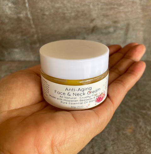 This cream is made with Hawaiian Beeswax and Olive squalane. All natural, Cruelty Free. Proprietary blend of therapy grade essential oils and nourishing oils support healing and toning your skin. The blend of oils are packed with natural vitamin A, C, and E. Added bee royal jelly and honey support with extra moisturizing effect. Soft cream can be easily applied on your face, neck and chest.