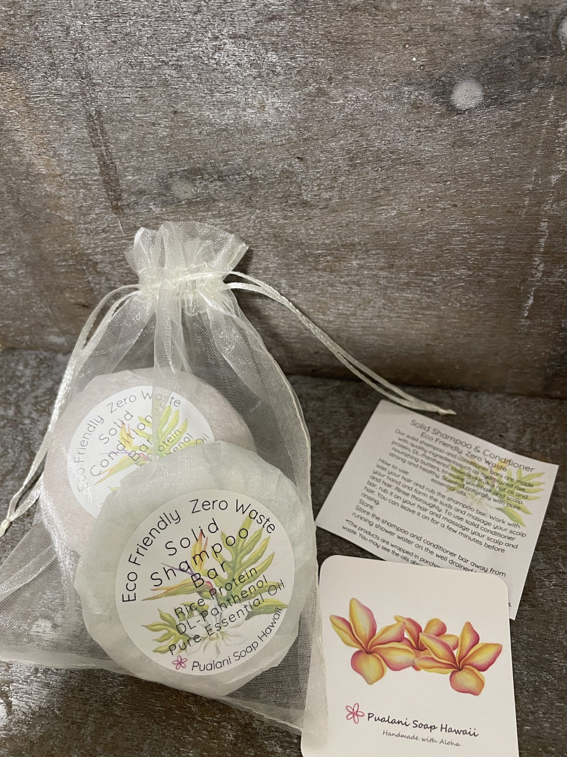 Use: Wet the hair and rub the shampoo bar on your hair and wash your sculp and hair. Rinse off with running shower water. After washing off the shampoo, rub the conditioner bar on your hair and massage your sculp. For maximum benefit, leave the conditioner on for a few minuits. Rinse off with running shower water. Store: keep the shampoo bar away from running shower water on the well drained tray. Shampoo Bar Ingredients: SCI (Sodium Coccyx Isethionate), Bubble boost (CAPB), Kukui nut oil, Jojoba oil, Aloe Butter, Cocoa Butter, BTMS50, Sodium Lactate, Hydrolyzed Rice Protein, DL-Panthenol, Pure Essential Oils, Geogard (preservative) & Aloha Conditioning Bar Ingredients: BTMS50, Emulsifying Was, Stearic Acid, Cethyl Alcohol, Aloe Butter, Shea Butter, Kukui Nut oil, Jojoba oil, Vegetable Glycerine, Hydrolyzed Rice Protein, DL-Panthenol, Vitamin E, Pure Essential Oils, Optiphen (preservative) & Aloha Check out our other products